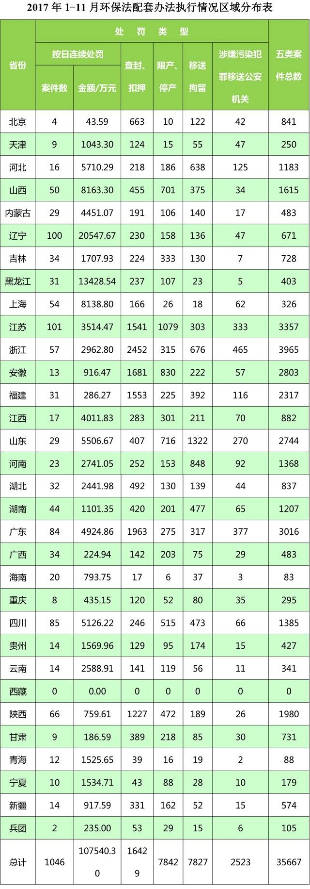 環(huán)保部想媒體通報(bào)2017年1-11月各地執(zhí)行《環(huán)境保護(hù)法》配套辦法及移送環(huán)境犯罪案件的情況。并對1-11月份案件較多的浙江、江蘇、廣東、安徽、山東、福建等地進(jìn)行表揚(yáng)。