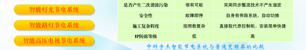 為此中科宇杰公司向社會推出節(jié)能環(huán)保先進(jìn)技術(shù)與高效服務(wù)模式的概念。擁有了八大體系節(jié)電系統(tǒng)和完善的節(jié)能服務(wù)杰節(jié)模式,為企業(yè)進(jìn)行節(jié)能改造能夠穩(wěn)定的達(dá)到節(jié)電需求。下面中科宇杰來分別介紹下公司的八大節(jié)電系統(tǒng)和各自的特點(diǎn):(如下圖)