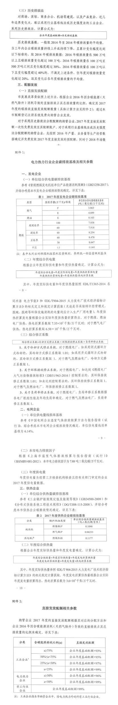 近日,上海市發(fā)改 委印發(fā)了《上海市2017年碳排放配額分配方案》, 方案中確定了上海市2017度碳排放交易體系配額總量為1.56億噸(含直接發(fā)放配額和儲備配額)。上海市采取行業(yè)基準(zhǔn)線法、歷史強(qiáng)度法和歷史排放法確定納管企業(yè)2017年度基礎(chǔ)配額。在具備條件的情況下,優(yōu)先采用行業(yè)基準(zhǔn)線法和歷史強(qiáng)度法等基于排放效率的分配方法。發(fā)電企業(yè):根據(jù)不同類型發(fā)電機(jī)組的單位綜合供電量碳排放基準(zhǔn)、年度綜合供電量以及綜合修正系數(shù),確定企業(yè)年度基礎(chǔ)配額。電網(wǎng)企業(yè):根據(jù)單位供電量線損率基準(zhǔn)、年度供電量以及電子排放因子,確定企業(yè)年度基礎(chǔ)配額。