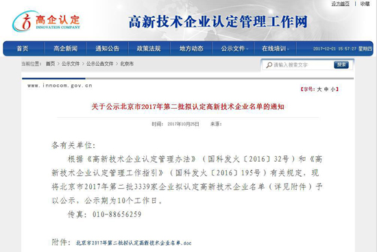 近日,國家高新技術企業(yè)認定管理工作網(wǎng)發(fā)布了《關于公示豐臺園2017年第二批擬認定高新技術企業(yè)名單的通知》,北京中科宇杰節(jié)電設備有限公司通過認證,榮獲“國家高新技術企業(yè)”的殊榮。