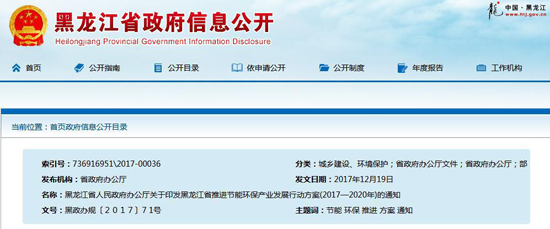 黑龍江省人民政府辦公廳關(guān)于印發(fā)黑龍江省推進(jìn)節(jié)能環(huán)保產(chǎn)業(yè)發(fā)展行動(dòng)方案(2017—2020年)的通知