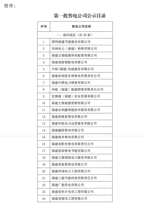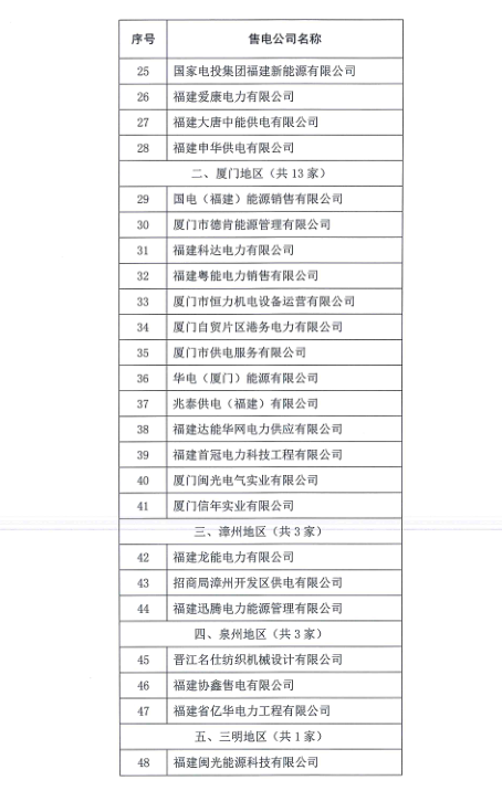福建電力交易中心12月18日發(fā)布了關(guān)于公示2017年第一批受理注冊(cè)售電公司相關(guān)信息的公告,本次一共公示53家售電公司,從第一批售電公司的公布情況來(lái)看,福州地區(qū)占比最大,一共有28家,其次為廈門(mén)地區(qū)有13家,此外漳州地區(qū)有3家,泉州地區(qū)有3家,三明地區(qū)1家,南平地區(qū)1家,寧德地區(qū)4家。公示期為2017年12月18日至2018年1月17日,時(shí)間1個(gè)月。