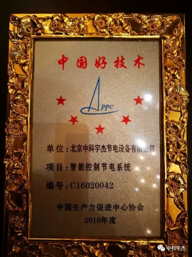 熱烈祝賀“中科宇杰智能控制節(jié)電系統(tǒng)”榮獲2016年度中國好技術(shù)殊榮