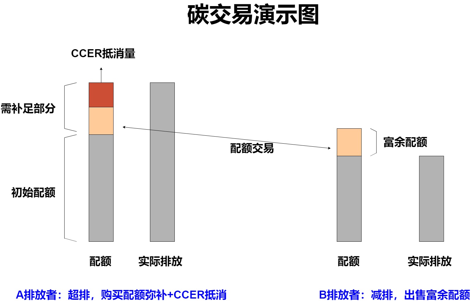 CCER同樣可用于企業(yè)碳排放抵減。參與碳交易市場(chǎng)的企業(yè),會(huì)有每年的排放配額,減排能力強(qiáng)的還可以申請(qǐng)自愿減排量(CCER),加入碳交易市場(chǎng),則可以交易富裕的配額和CCER,相當(dāng)于是減排完成度差的企業(yè)向減排完成度好的企業(yè)進(jìn)行“經(jīng)濟(jì)補(bǔ)償”。