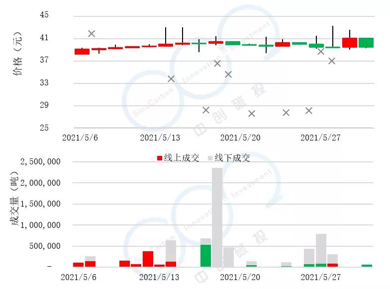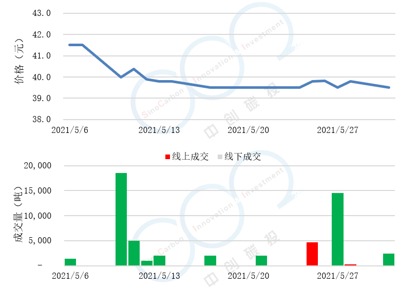 - 線上成交價(jià)最低為39.50元,最高為41.50元,平均碳價(jià)為39.93元。