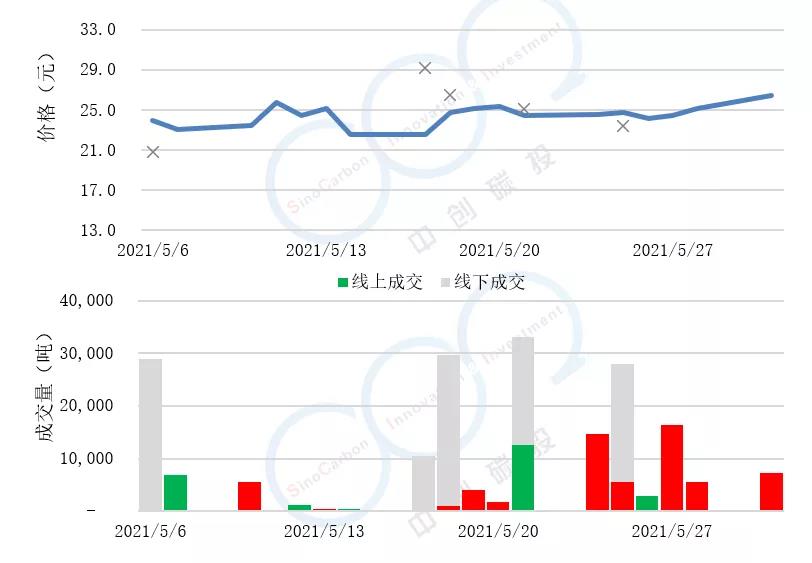 - 線下成交價(jià)最低為20.80元,最高為29.15元,平均碳價(jià)為24.99元。