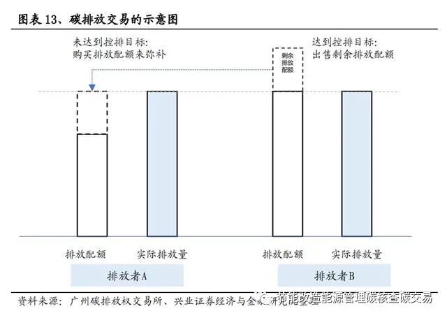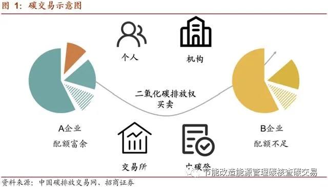 碳交易市場是由政府通過對能耗企業(yè)的控制排放而人為制造的市場。通常情況下,政府確定一個碳排放總額,并根據(jù)一定規(guī)則將碳排放配額分配至企業(yè)。如果未來企業(yè)排放高于配額,需要到市場上購買配額。與此同時,部分企業(yè)通過采用節(jié)能減排技術(shù),最終碳排放低于其獲得的配額,則可以通過碳交易市場出售多余配額。雙方一般通過碳排放交易所進(jìn)行交易。