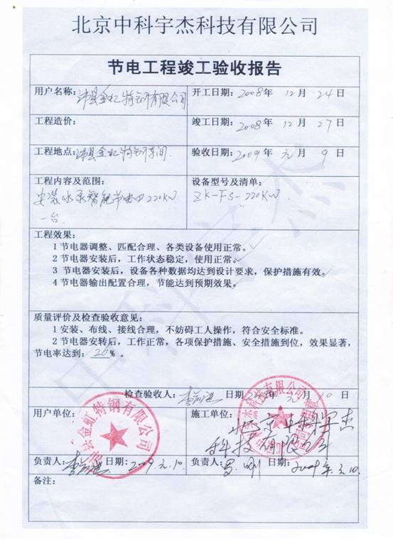 沛縣金虹特鋼有限公司節(jié)能改造項目(節(jié)電率:26%)