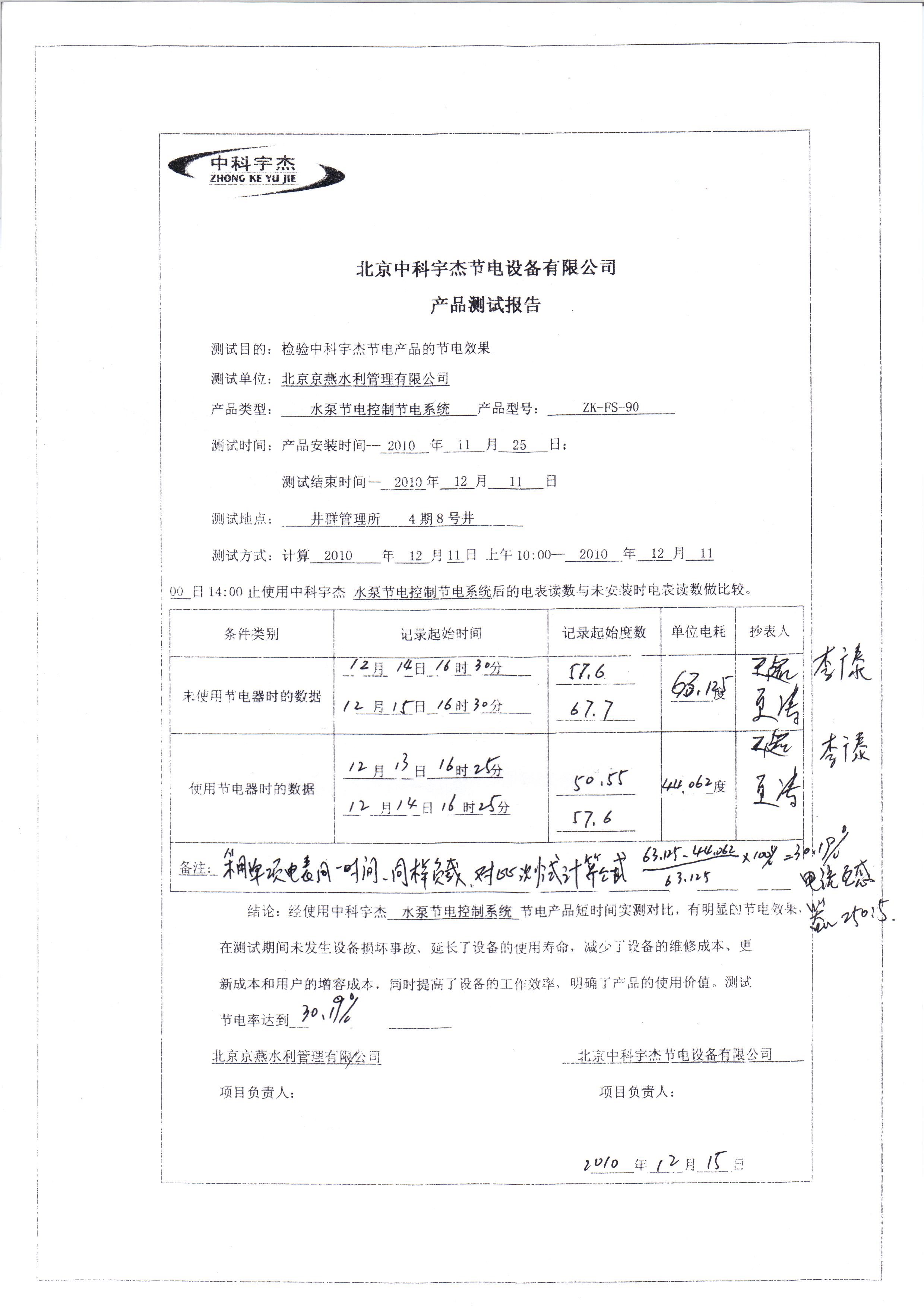 經安裝調試驗收,節(jié)能效率達到30%,投資回報期6個月,按質保十年計算,此項節(jié)能工程能為北京京燕水利管理有限公司帶來380萬人民幣以上的直接效益。