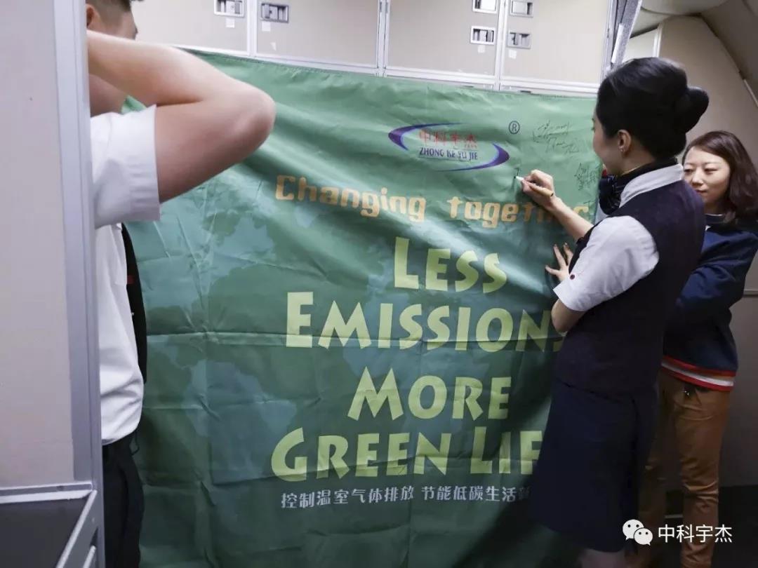 本次公益宣傳愛(ài)心傳遞活動(dòng)得到國(guó)航CA877機(jī)組成員大力支持,據(jù)乘務(wù)長(zhǎng)介紹國(guó)航一直注重綠色低碳,國(guó)航機(jī)組成員作為節(jié)能減排的倡導(dǎo)者,保護(hù)環(huán)境,人人有責(zé),通過(guò)參與中科宇杰本次活動(dòng),呼吁全球共同參與,傳遞正能量,積極參與的溫室氣體減排行動(dòng)?!癓ess Emissions More Green Life”活動(dòng),并在的綠色宣傳旗上簽字,節(jié)能低碳我先行,共同參與,共同倡導(dǎo),節(jié)能低碳生活新風(fēng)尚。